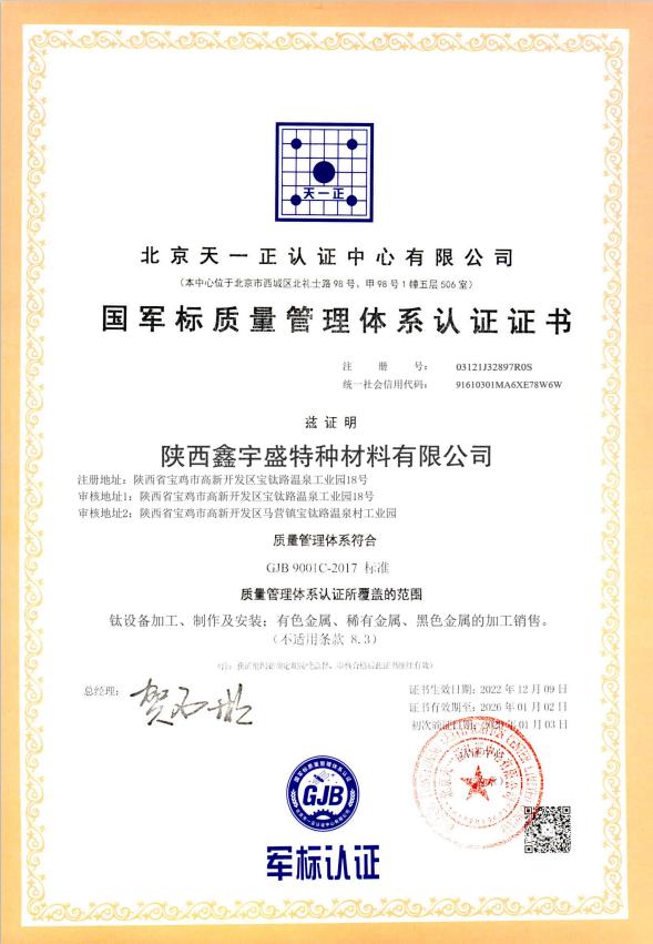 陕西鑫宇盛特种材料有限公司主要生产:钛棒、钛网、钛板、钛管、钛丝、钛箔材、钛管件、钛标准件、钛法兰、锆及锆合金、镍及镍合金、钛化工设备及其他钛制品